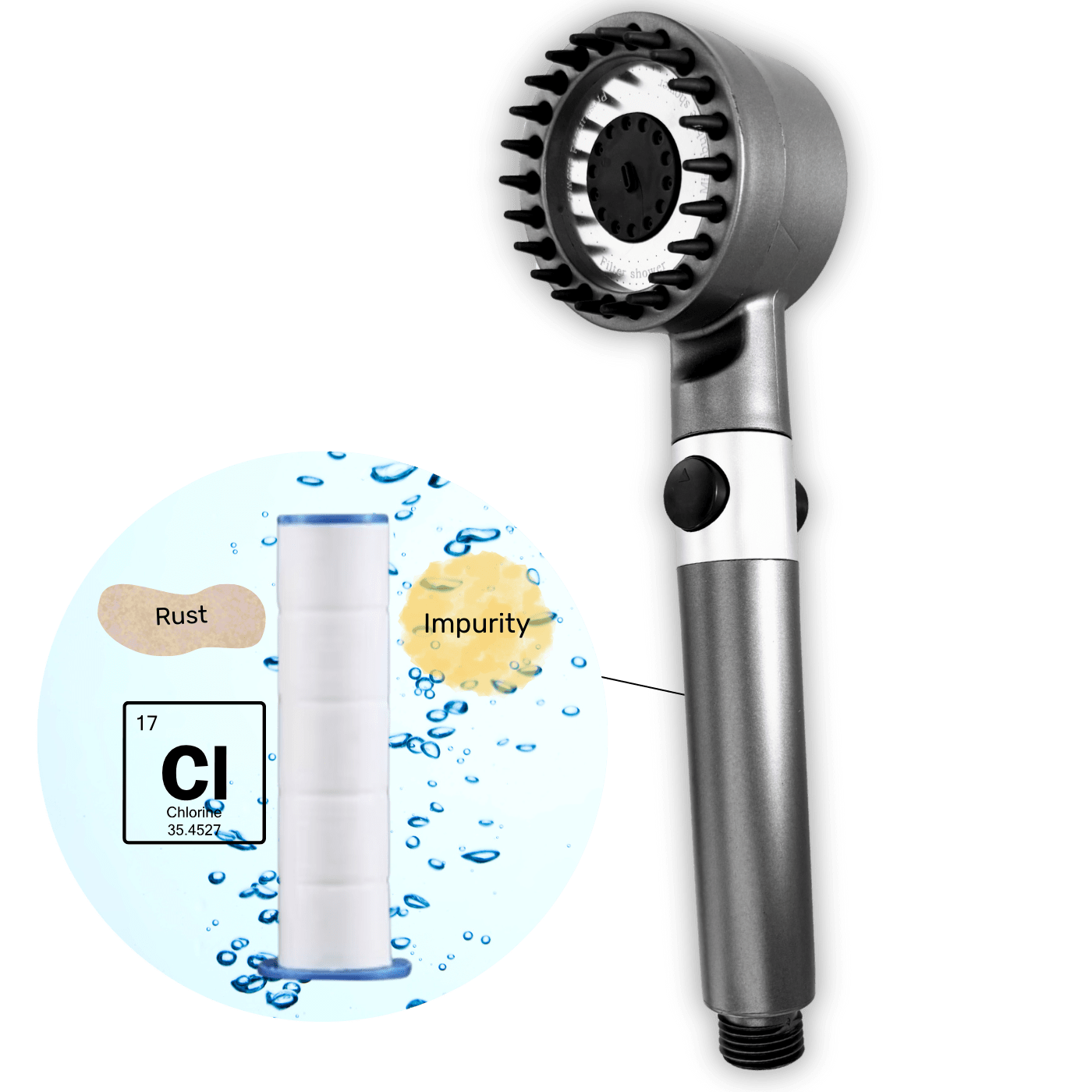 Our advanced filtration shower head is designed to reduce chlorine, heavy metals, and impurities while boosting water pressure — helping restore healthier hair, smoother skin, and a refreshing shower experience you’ll actually enjoy